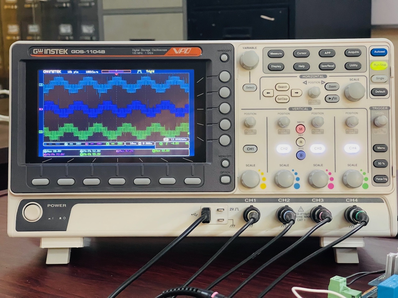 Three Phase Inverter Live Waveforms for Motor Drive Application